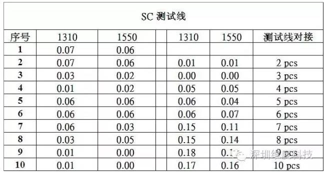 低損耗光纖測試結(jié)果